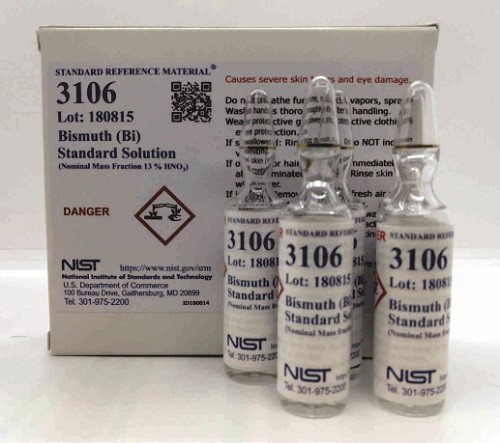 NIST SRM 3104 a鋇(Ba)標準溶液液(標準品) 旨在用作鋇定量測定的主要校準標準。 SRM 3104a 的一個單元由五個 10 mL 密封的硼硅酸鹽玻璃安瓿組成,這些安瓿是通過重量法制備的酸化水溶液,含有已知質量分數的鋇。該溶液含有體積分數約為 1% 的硝酸,相當于約 0.16 mol/L 的濃度(摩爾濃度)。