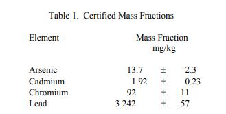 表 1 中提供了四種環境重要元素的認證值。NIST 認證值是 NIST 對其準確性有最高置信度的值,因為所有已知或可疑的偏差來源都已調查或說明由 NIST 提供。