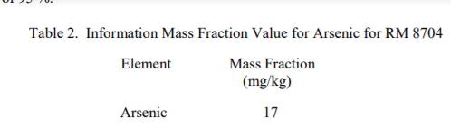 表 2 中提供了砷的信息值。信息值是未經認證的值,沒有足夠的信息來分配不確定性 [1]。信息值不能用于建立計量溯源性。
